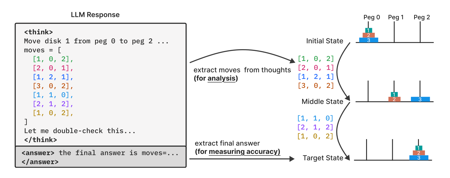 One of the most important findings in the paper is that even when the researchers gave the model the answer, that didn’t improve performance. For instance, there is a known algorithmic solution to the Tower of Hanoi puzzle. It’s a series of sequential steps that ultimately yields the right solution for the task. When researchers provided that algorithmic solution in the prompt, the large reasoning models did not perform any better than when they weren’t given the algorithmic solution.
